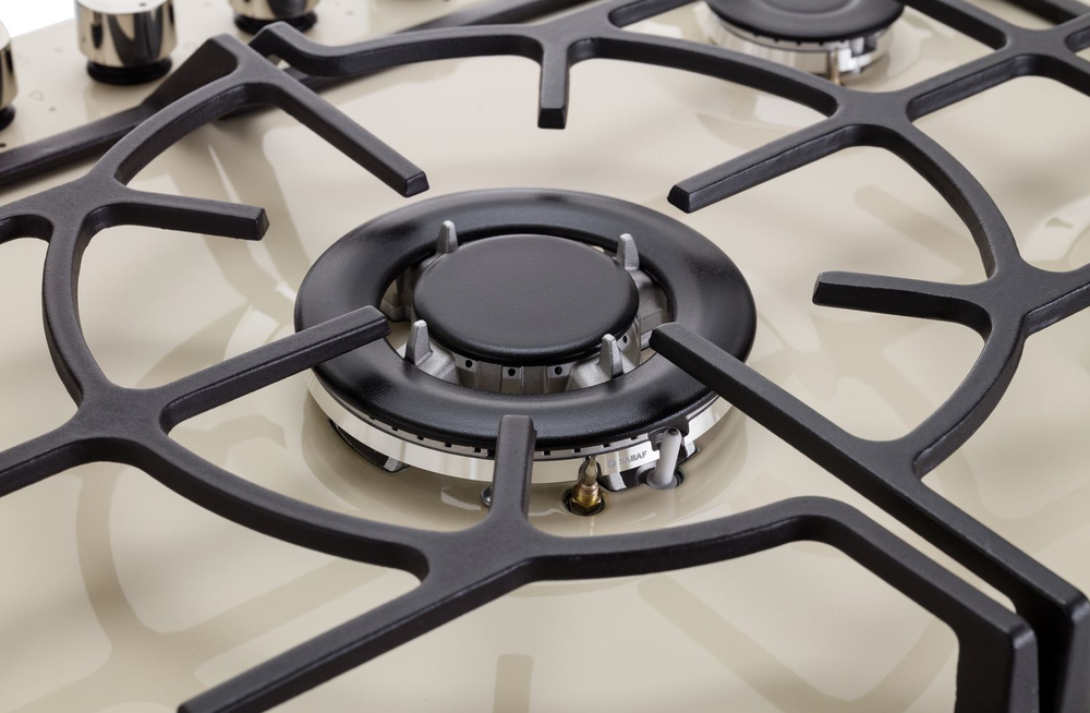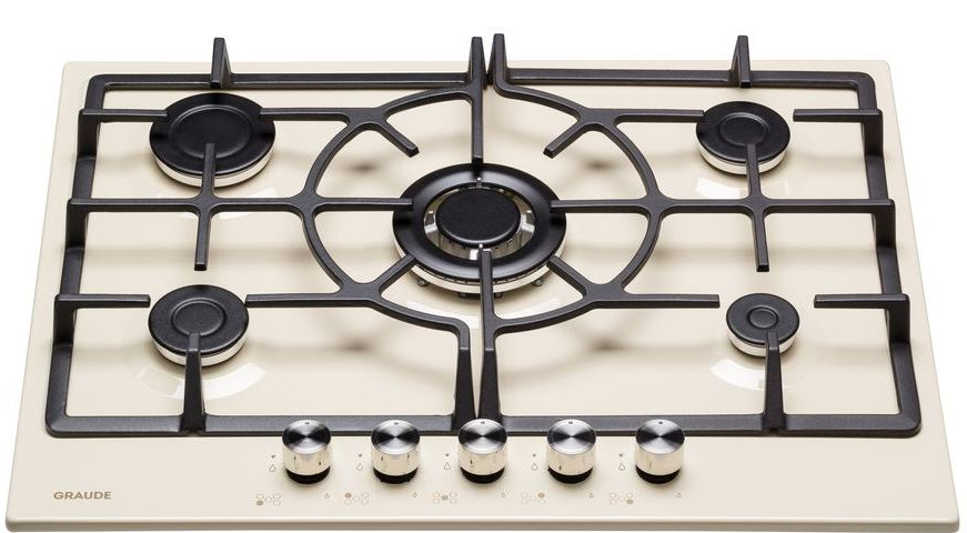 поверхность газовая, 70 см, газ на эмали, 5 конфорок, решетки чугунные, кремовый