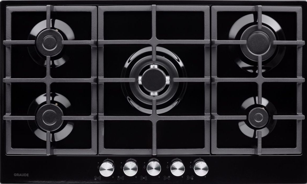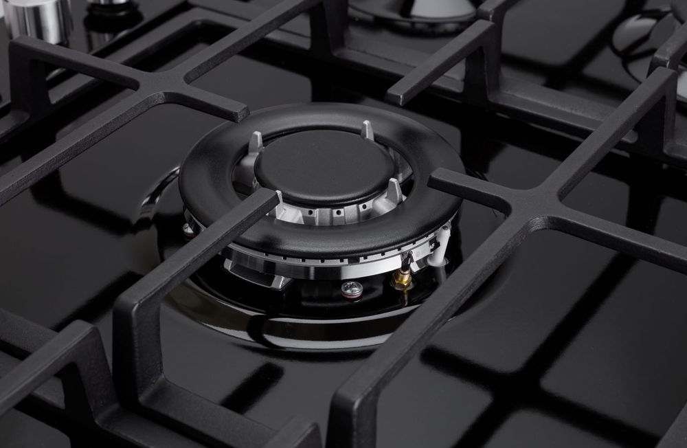 поверхность газовая, 86 см, газ на эмали, 5 конфорок, решетки чугунные, черный