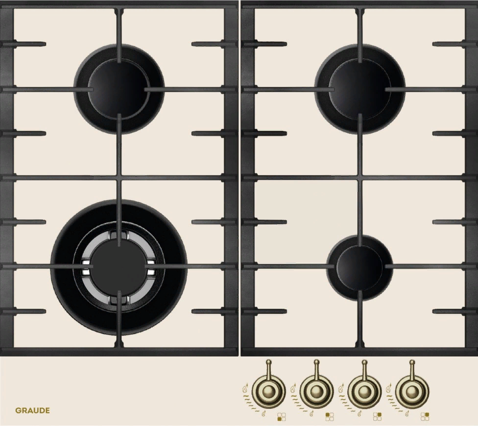 поверхность газовая, 60 см, газ на стекле, 4 конфорки, решетки чугунные, античный белый