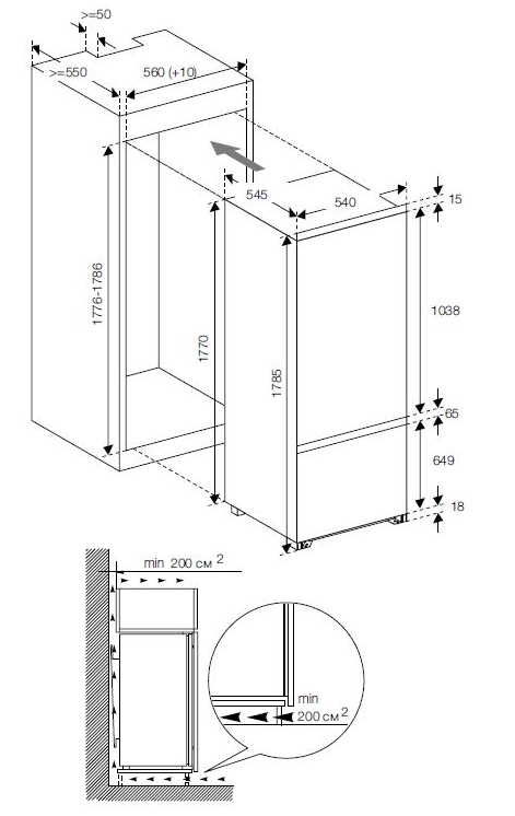 холодильник-морозильник встраиваемый, 248 л, класс энергопотребления А+, No Frost, 54х54х177 см, белый