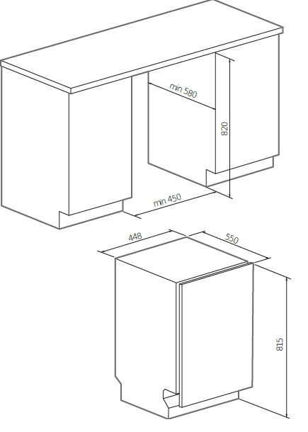 машина посудомоечная встраиваемая, 45 см, 10 комплектов, белый
