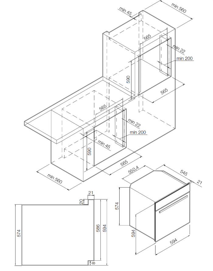 Ширина корпуса электроприбора. Особенно важно точно знать точную допустимую ширину для встраиваемой техники.