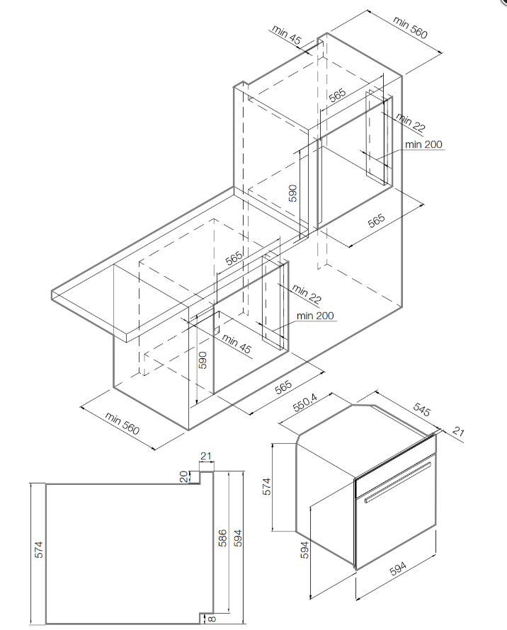 Ширина корпуса электроприбора. Особенно важно точно знать точную допустимую ширину для встраиваемой техники.