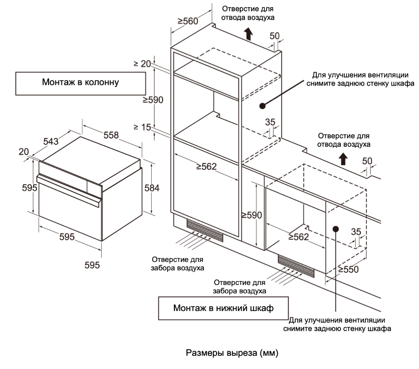 Ширина корпуса электроприбора. Особенно важно точно знать точную допустимую ширину для встраиваемой техники.