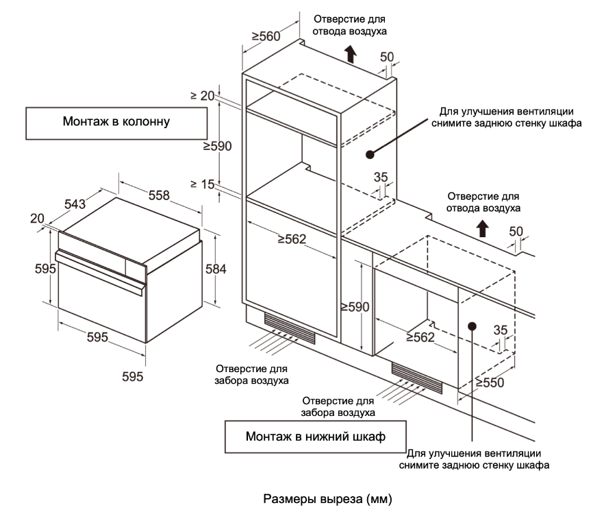 Ширина корпуса электроприбора. Особенно важно точно знать точную допустимую ширину для встраиваемой техники.