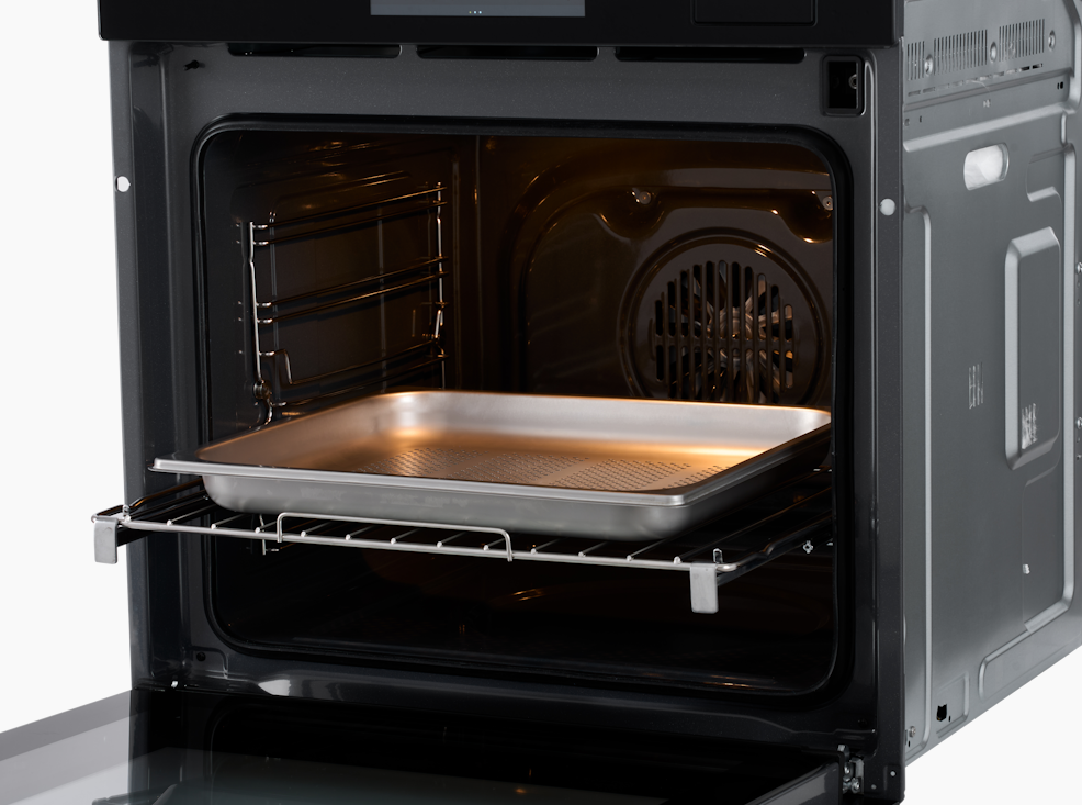 Предполагает наличие встроенного вентилятора, который обеспечивает равномерное запекание благодаря непрерывной циркуляции горячего воздуха.