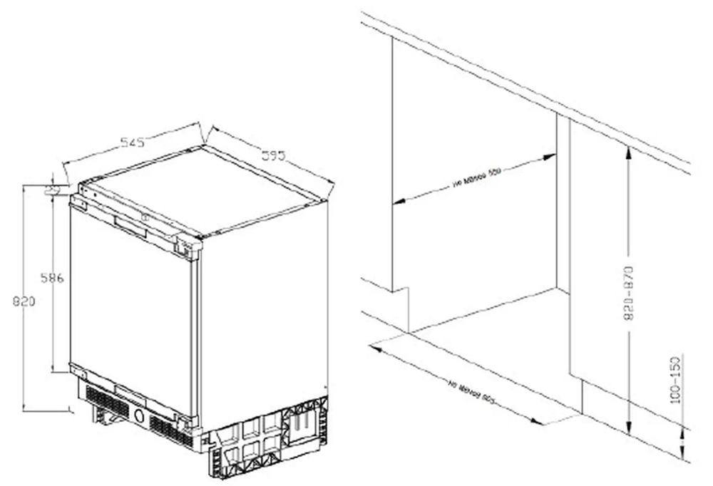 холодильник однокамерный встраиваемый, 110 л, класс энергопотребления А, ручная система размораживания, 60,5х54,5х82 см, белый