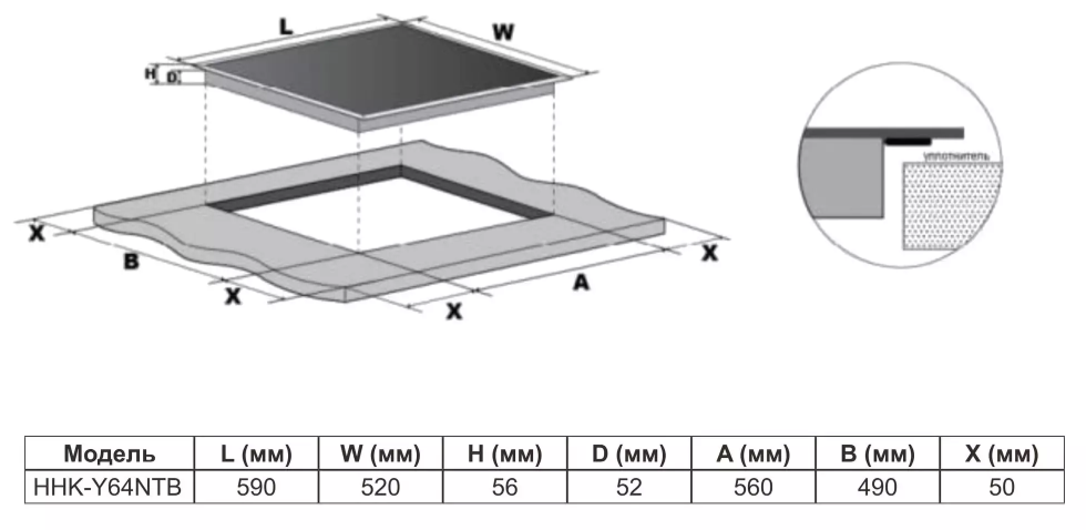поверхность варочная стеклокерамическая индукционная, 60 см, черный, скошенные края