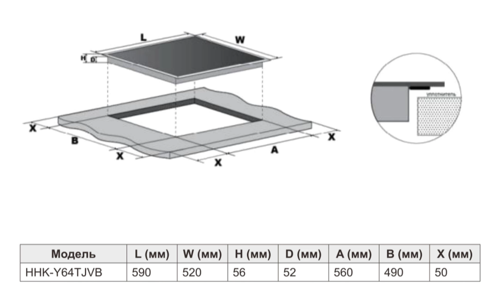 Характер огранки фаски на внешней стороне варочной панели. Металлические рамки предотвращают забивание монтажных швов крошками и пылью.