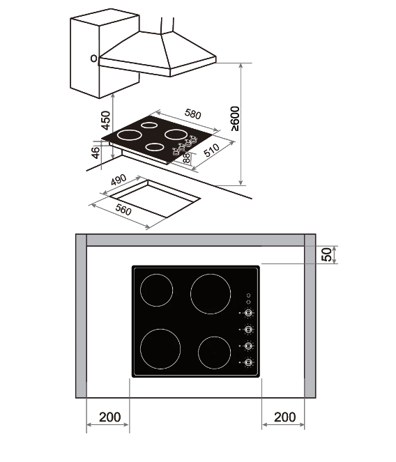 поверхность варочная стеклокерамическая, 60 см, черный