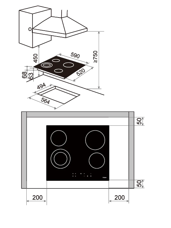 Haier HHX-C64DFB Стеклокерамическая поверхность