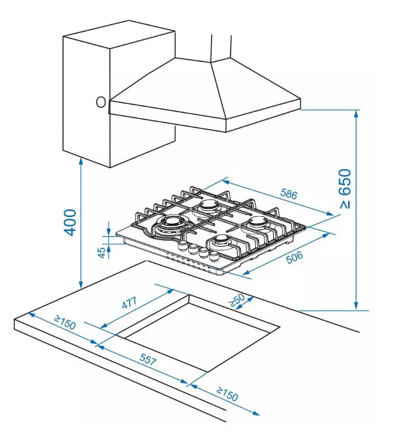 Модели со встроенной вытяжкой подходят для компактных кухонь. Запахи, пар и дым от готовки полностью поглощаются встроенной вытяжкой.