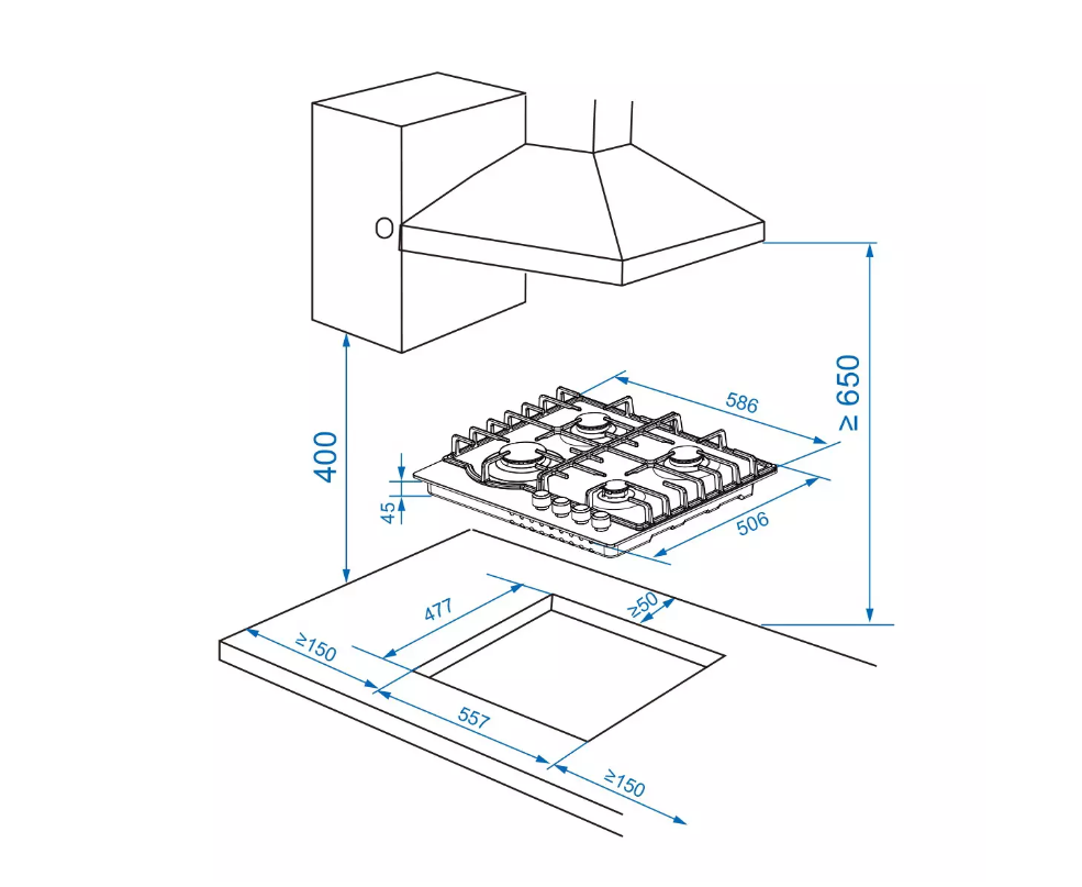 Модели со встроенной вытяжкой подходят для компактных кухонь. Запахи, пар и дым от готовки полностью поглощаются встроенной вытяжкой.