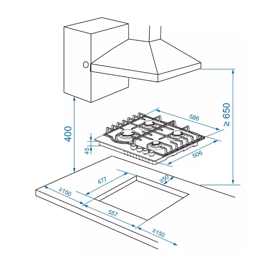 Модели со встроенной вытяжкой подходят для компактных кухонь. Запахи, пар и дым от готовки полностью поглощаются встроенной вытяжкой.