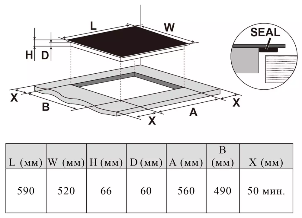 поверхность варочная стеклокерамическая индукционная, 60 см, черный, скошенные края