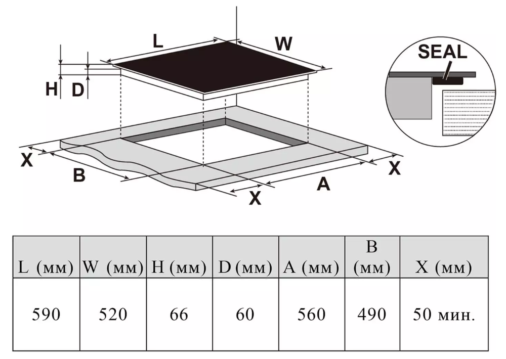 поверхность варочная стеклокерамическая индукционная, 60 см, черный, скошенные края