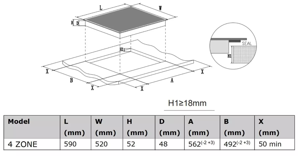 поверхность варочная стеклокерамическая, 60 см, черный, без рамки