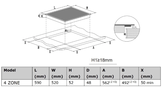 Характер огранки фаски на внешней стороне варочной панели. Металлические рамки предотвращают забивание монтажных швов крошками и пылью.