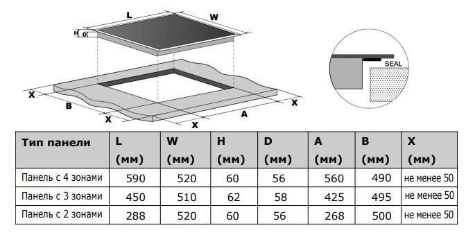 На варочной поверхности может быть от 2 до 8 электрических конфорок с индукционным нагревом. Для них нужна специальная посуда.