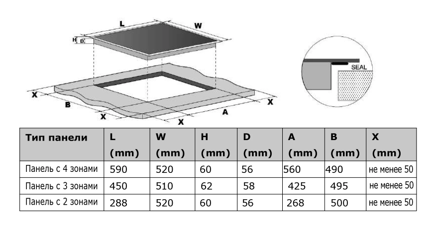 На варочной поверхности может быть от 2 до 8 электрических конфорок с индукционным нагревом. Для них нужна специальная посуда.