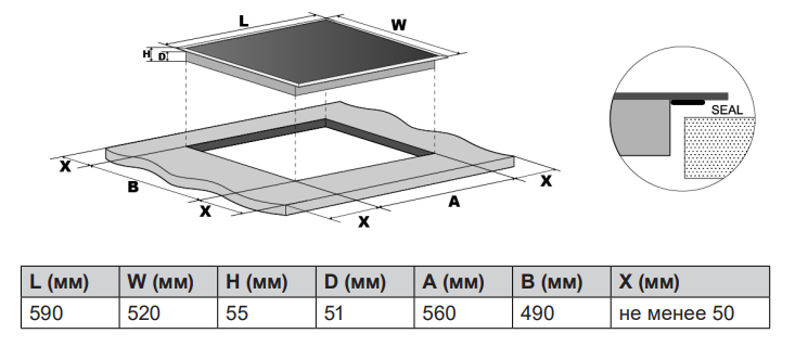 поверхность варочная стеклокерамическая индукционная, 60 см, черный