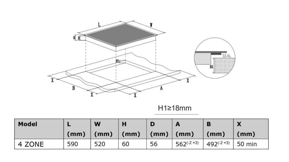 поверхность варочная стеклокерамическая  индукционная, 60 см, белый, без рамки