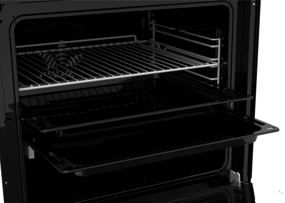 Выдвижные металлические полозья, которые легко выезжают за пределы камеры духовки вместе с противнем, не давая ему упасть.