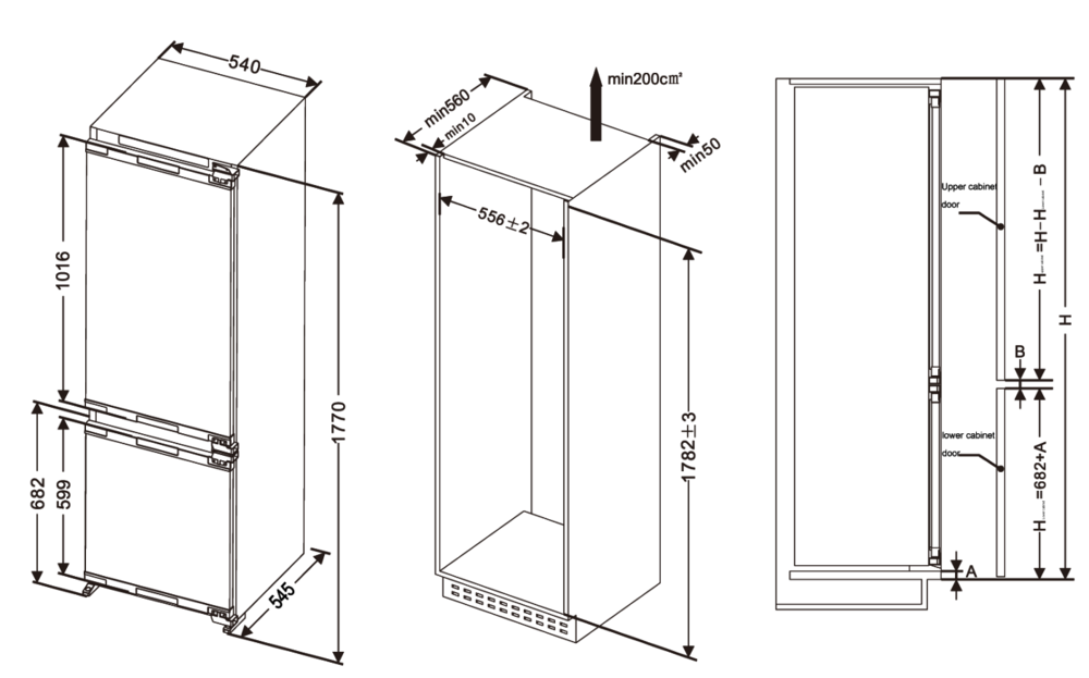 холодильник-морозильник встраиваемый, 236 л, класс энергопотребления А, No Frost, 54х54,5х177 см