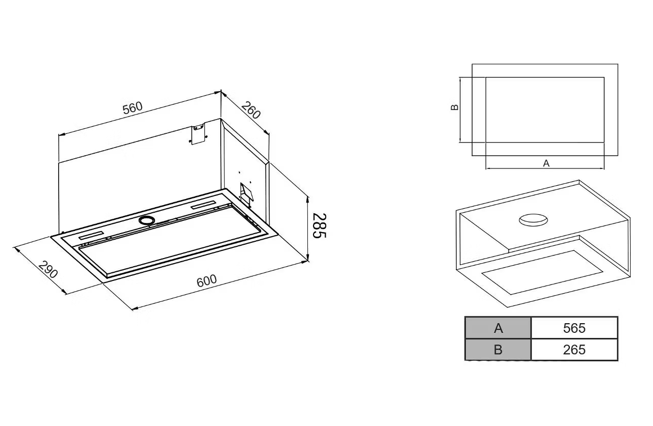 вытяжка встраиваемая в подвесной шкаф, 60 см, 560 м3/ч, белый + нержавеющая сталь
