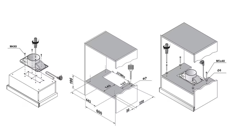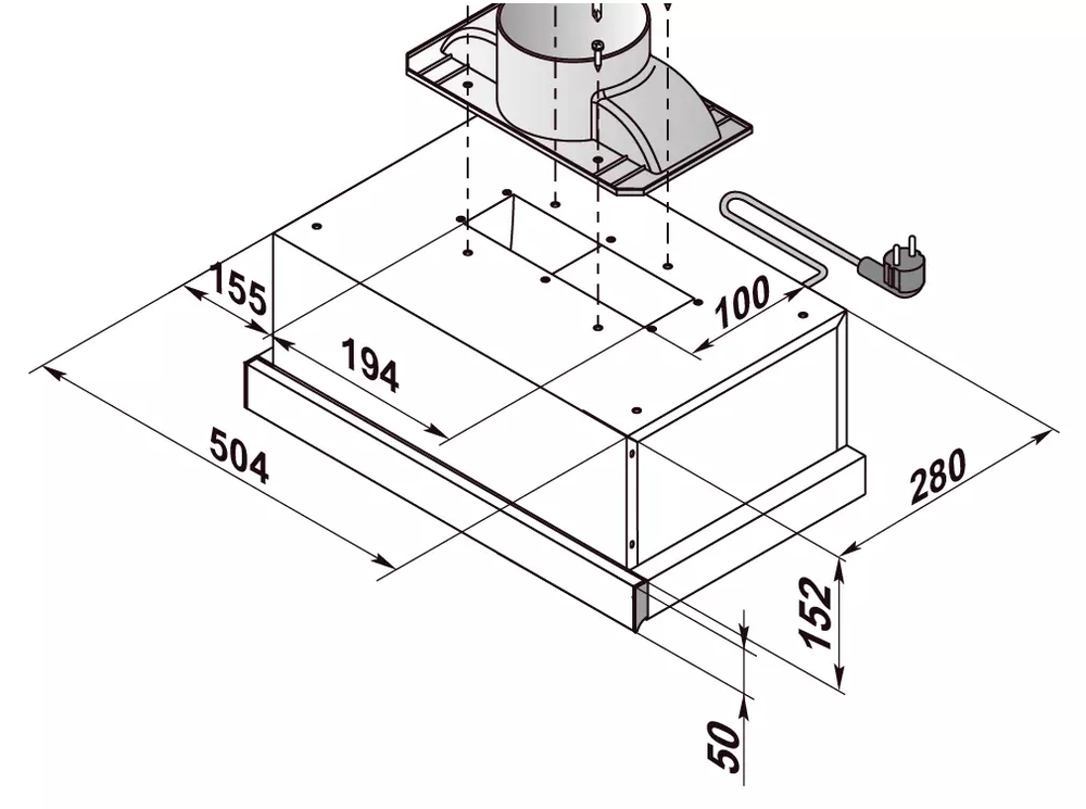 вытяжка встраиваемая телескопическая, 60 см, 420 м3/ч, черный