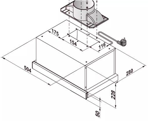 вытяжка встраиваемая телескопическая, 60 см, 600 м3/ч, черный