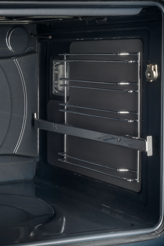 Выдвижные металлические полозья, которые легко выезжают за пределы камеры духовки вместе с противнем, не давая ему упасть.