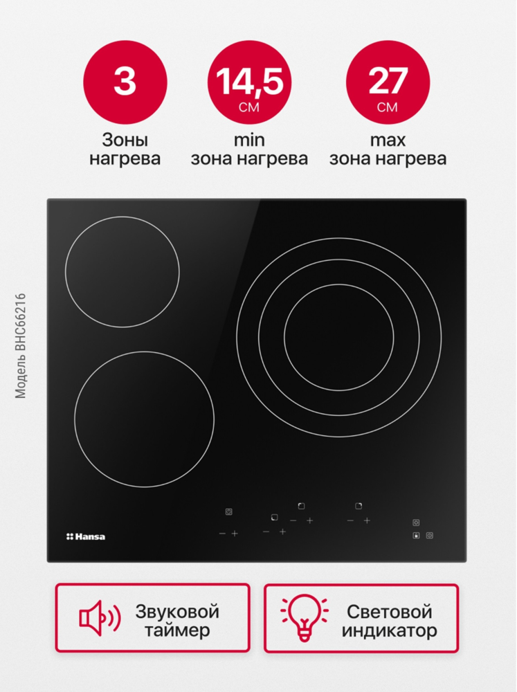 Расположение панели управления варочной поверхностью относительно конфорок. Если панель расположена сбоку, она будет справа.