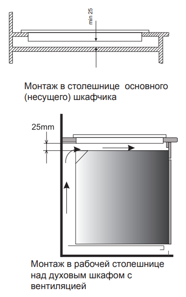 Характер огранки фаски на внешней стороне варочной панели. Металлические рамки предотвращают забивание монтажных швов крошками и пылью.