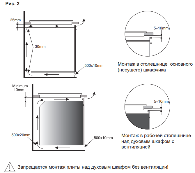 Характер огранки фаски на внешней стороне варочной панели. Металлические рамки предотвращают забивание монтажных швов крошками и пылью.