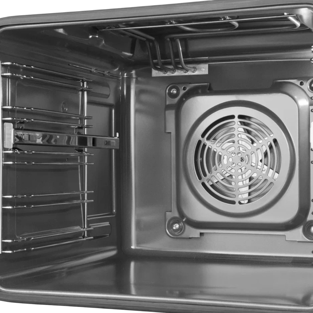 Предполагает наличие встроенного вентилятора, который обеспечивает равномерное запекание благодаря непрерывной циркуляции горячего воздуха.