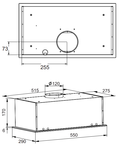 вытяжка встраиваемая в подвесной шкаф, 55 см, 500 м3/ч, черный