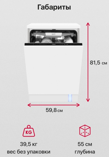 машина посудомоечная встраиваемая, 60 см, 14 комплектов