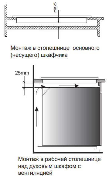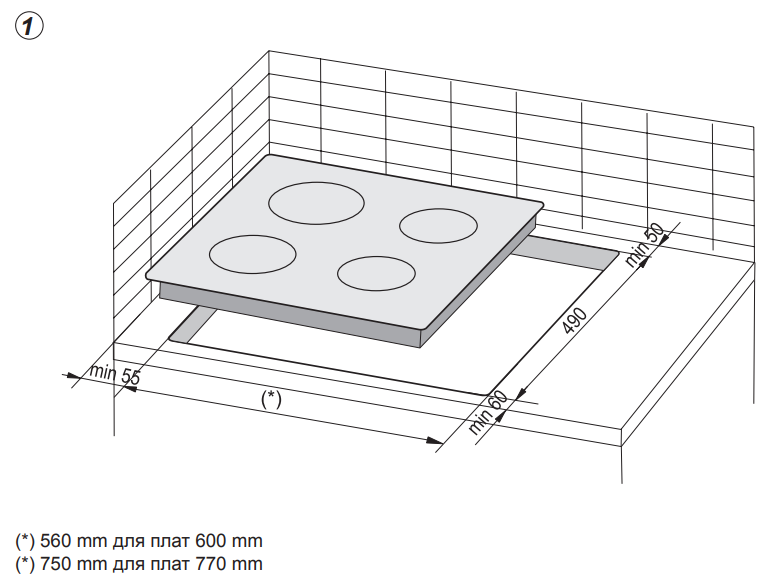 Характер огранки фаски на внешней стороне варочной панели. Металлические рамки предотвращают забивание монтажных швов крошками и пылью.