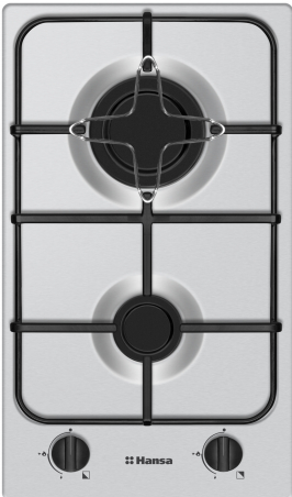 поверхность газовая, 30 см, газ на металле, 2 конфорки, решетки эмалированные, нержавеющая сталь