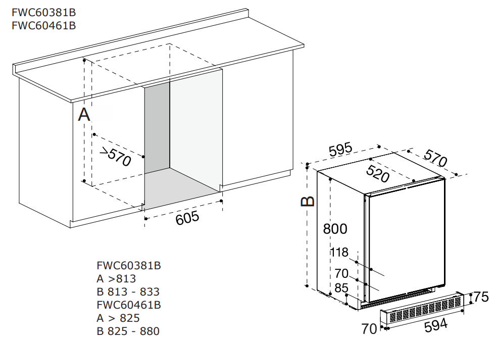 винный шкаф встраиваемый, 118 л, 59,5х57х82,5 см, черный