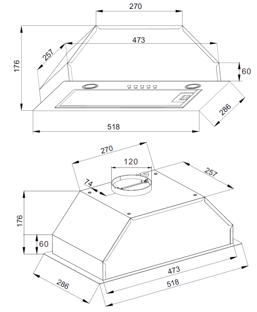 вытяжка встраиваемая в подвесной шкаф, 52 см, 650 м3/ч, белый