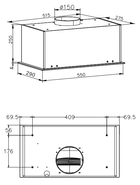 вытяжка встраиваемая в подвесной шкаф, 55 см, 500 м3/ч, черный