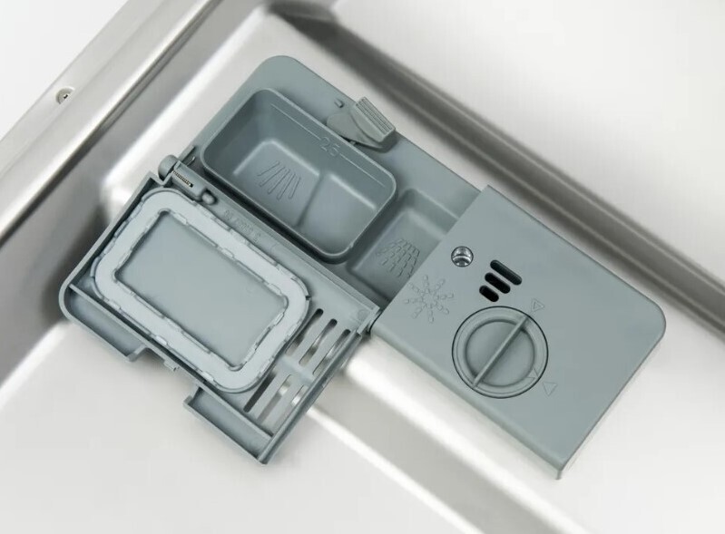 Возможно использование специальных таблеток 3в1, включающих моющее средство, ополаскиватель и соль для смягчения воды. Это быстро и удобно.
