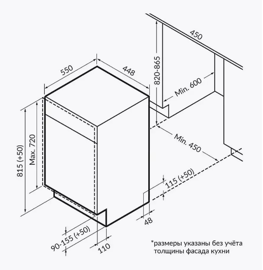 Ширина корпуса электроприбора. Особенно важно точно знать точную допустимую ширину для встраиваемой техники.