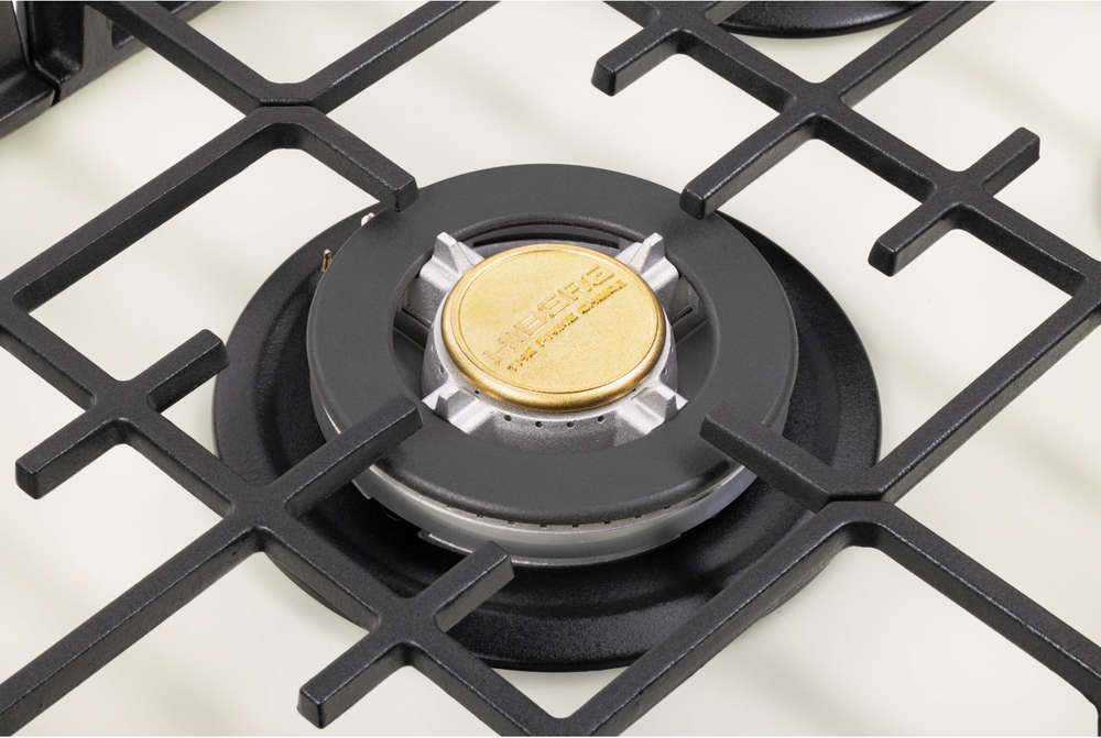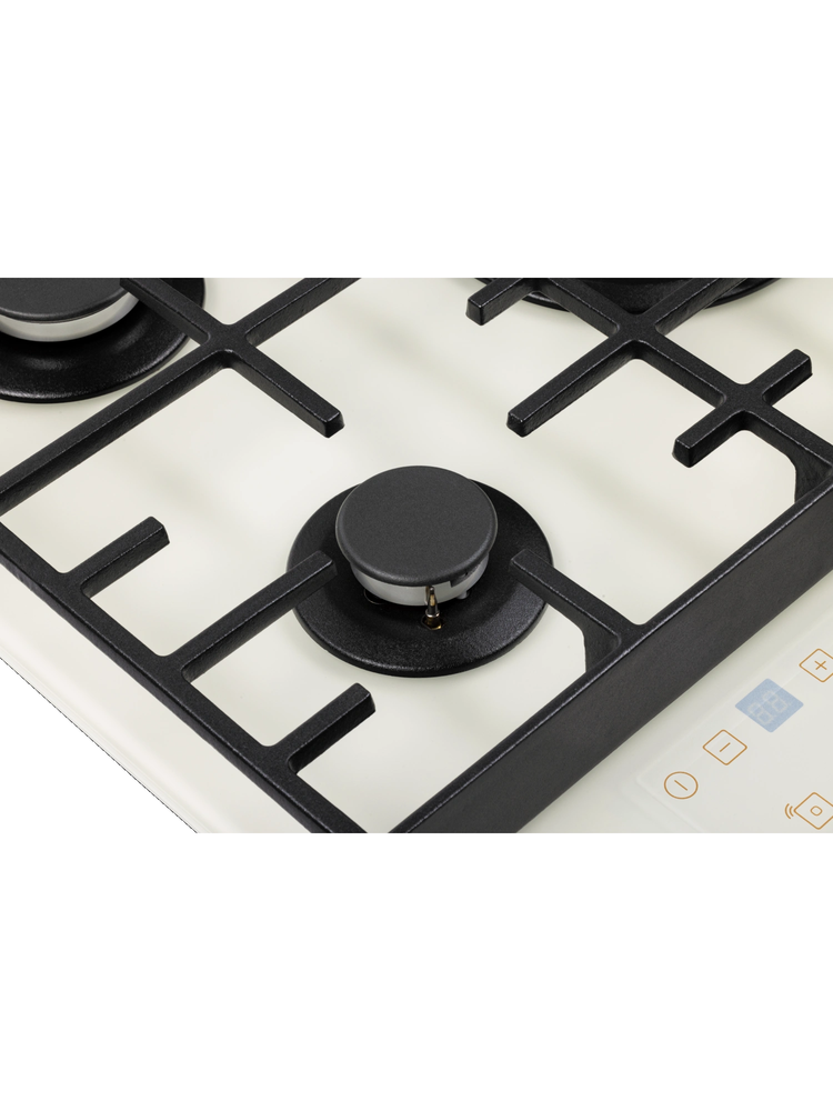поверхность газовая, 70 см, газ на стекле, 5 конфорок, решетки чугунные, бежевое матовое стекло