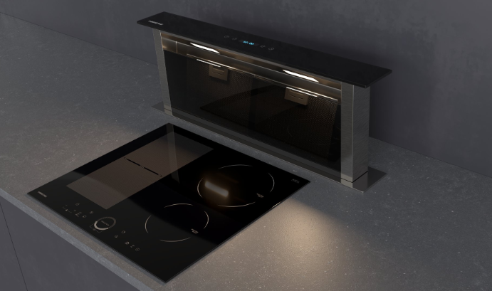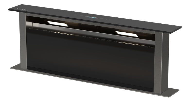 вытяжка встраиваемая в столешницу, 88 см, 1000 м3/ч, нержавеющая сталь + черное закаленное стекло
