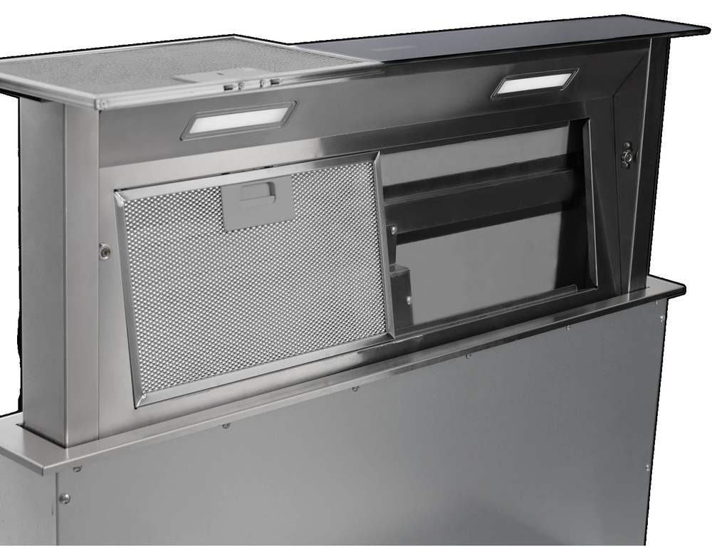 вытяжка встраиваемая в столешницу, 88 см, 1000 м3/ч, черное стекло/ нержавеющая сталь