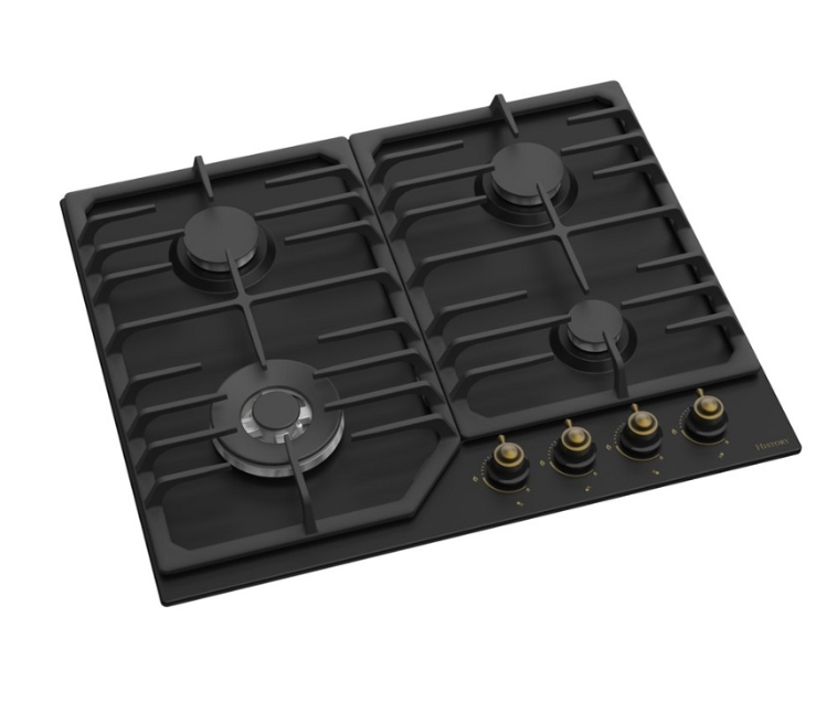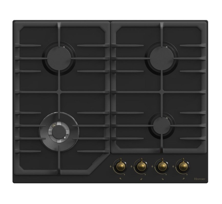 поверхность газовая, 60 см, газ на эмали, 4 конфорки, решетки чугунные, черная ретро