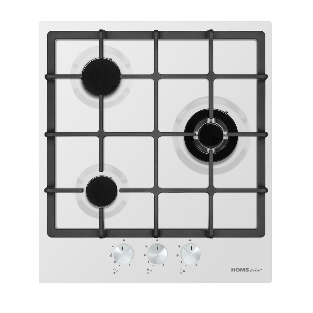 поверхность газовая, 45 см, газ на эмали, 3 конфорки, решетки чугунные, белый